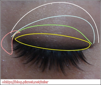 4. 黃色-用z型最下面那色,畫上眼線,可以盡量重疊,更深遂