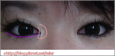 5. 粉紅色-也是用鑽石眼影BR-1右邊淺色打亮眼頭畫成ㄑ字型